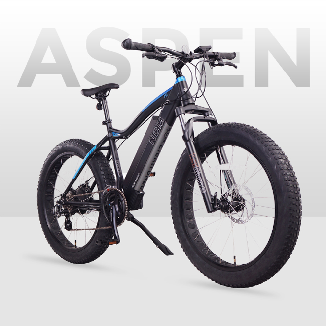 With a large tire width, the NCM Aspen is hugely capable. Developed in Iceland for riding on snow and ice the Fat bikes large tires surface area make it great for soft terrain including sand and gravel.