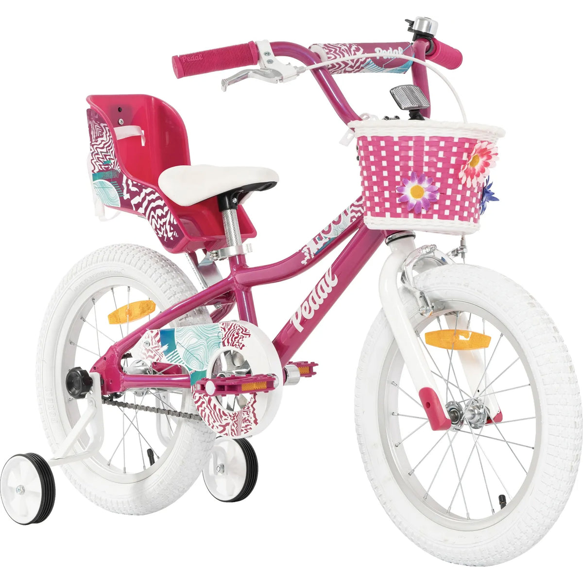 The Pedal Hoot 16″ Alloy Kids Bike is a fun and functional bike for young riders ready to explore. With a lightweight alloy frame and kid-friendly features like a soft foam saddle, easy-to-use coaster and front brake, and tool-free removable training wheels, itβs designed for easy handling and control. Complete with a front race plate and a rear fender, the Pedal Hoot combines safety, comfort, and a little extra fun, making it the perfect ride for growing cyclists.