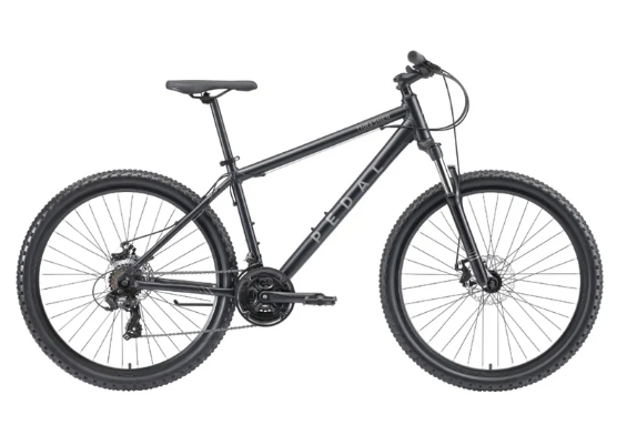 The Pedal Thrasher 4 Hardtail Mountain Bike epitomizes versatility, catering to beginners and those transitioning to adult-sized bikes alike. Featuring a contemporary frame design with updated geometry, it positions the rider upright and centered on the bike, enhancing control and confidence. With a 3×7 speed drivetrain and trigger shifters, you can expect reliable gear shifts and a wide range of options for conquering steep inclines or cruising along flat bike paths with ease. Its mechanical disc brakes ensure efficient stopping power and greater durability compared to traditional V brakes, enabling consistent control and longer intervals between maintenance. Equipped with 27.5″ wheels fitted with off-road style tires, this bike strikes a balance between traction and speed. Offering exceptional value for money, the Pedal Thrasher 4 Hardtail Mountain Bike combines the reliability of mechanical disc brakes and a quality drivetrain with its rugged MTB-style frame and fork, ready to tackle various terrains and adventures head-on!